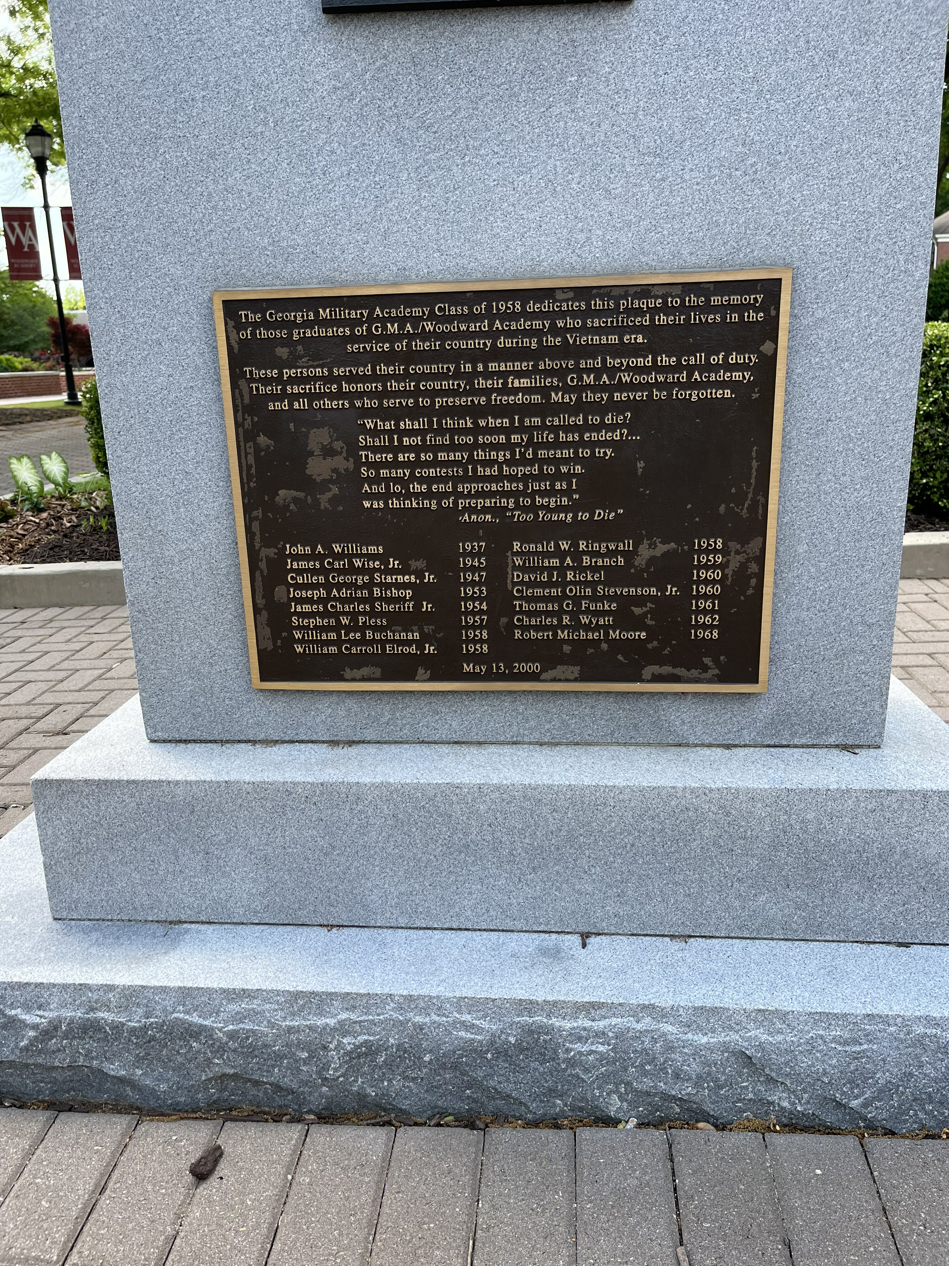 Memorial Plaza: GMA Graduate Viet Nam Casualties Plaque